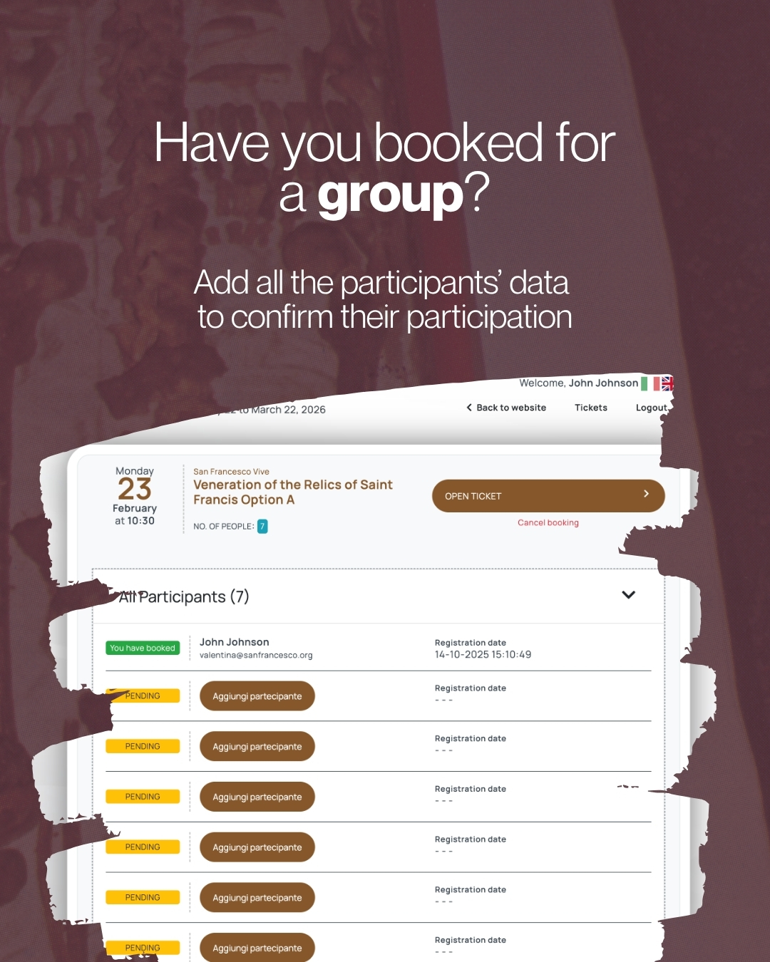 Welcome to the booking page for participating in the veneration of the relics of Saint Francis.