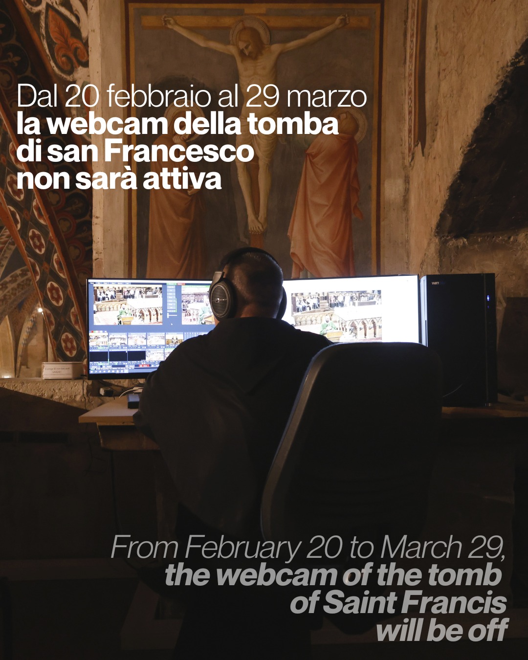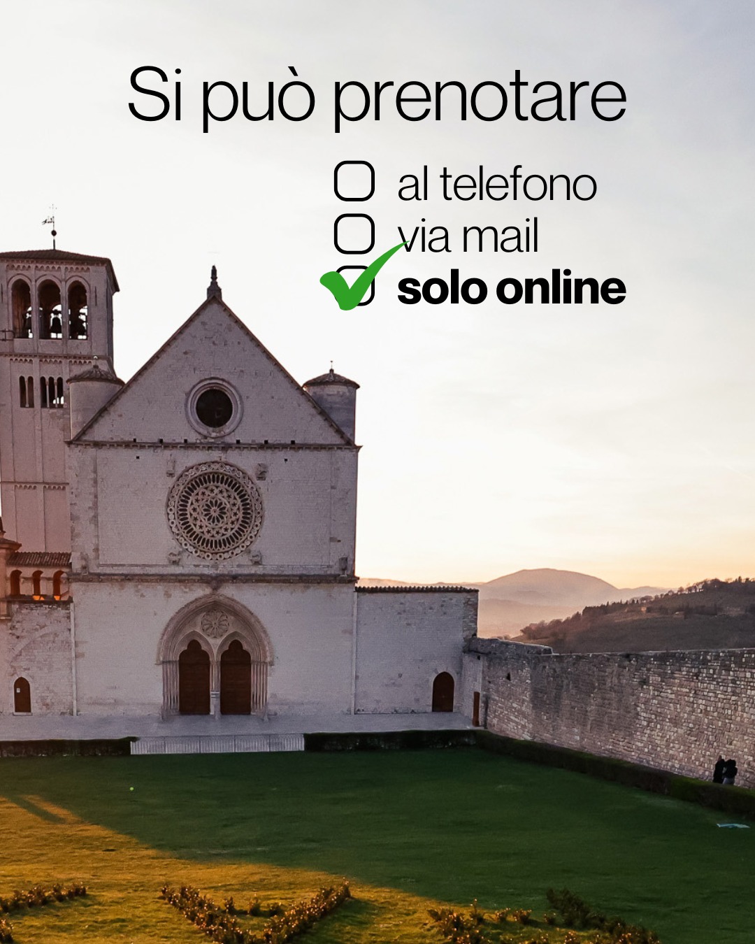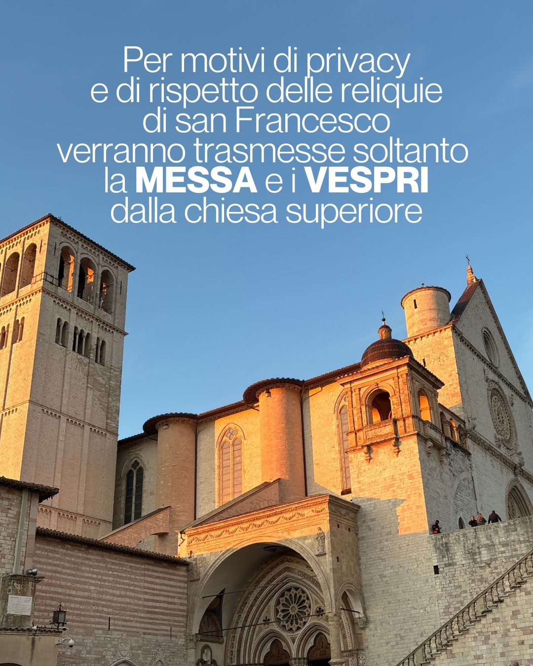 Tenendo conto della capienza limitata dei posti della chiesa superiore e per consentire un accesso ordinato e una celebrazione in sicurezza, chi desidera partecipare alla Santa Messa in chiesa superiore dovrà prenotarsi gratuitamente a questo link: www.sanfrancescovive.org/prenotazione/#messa