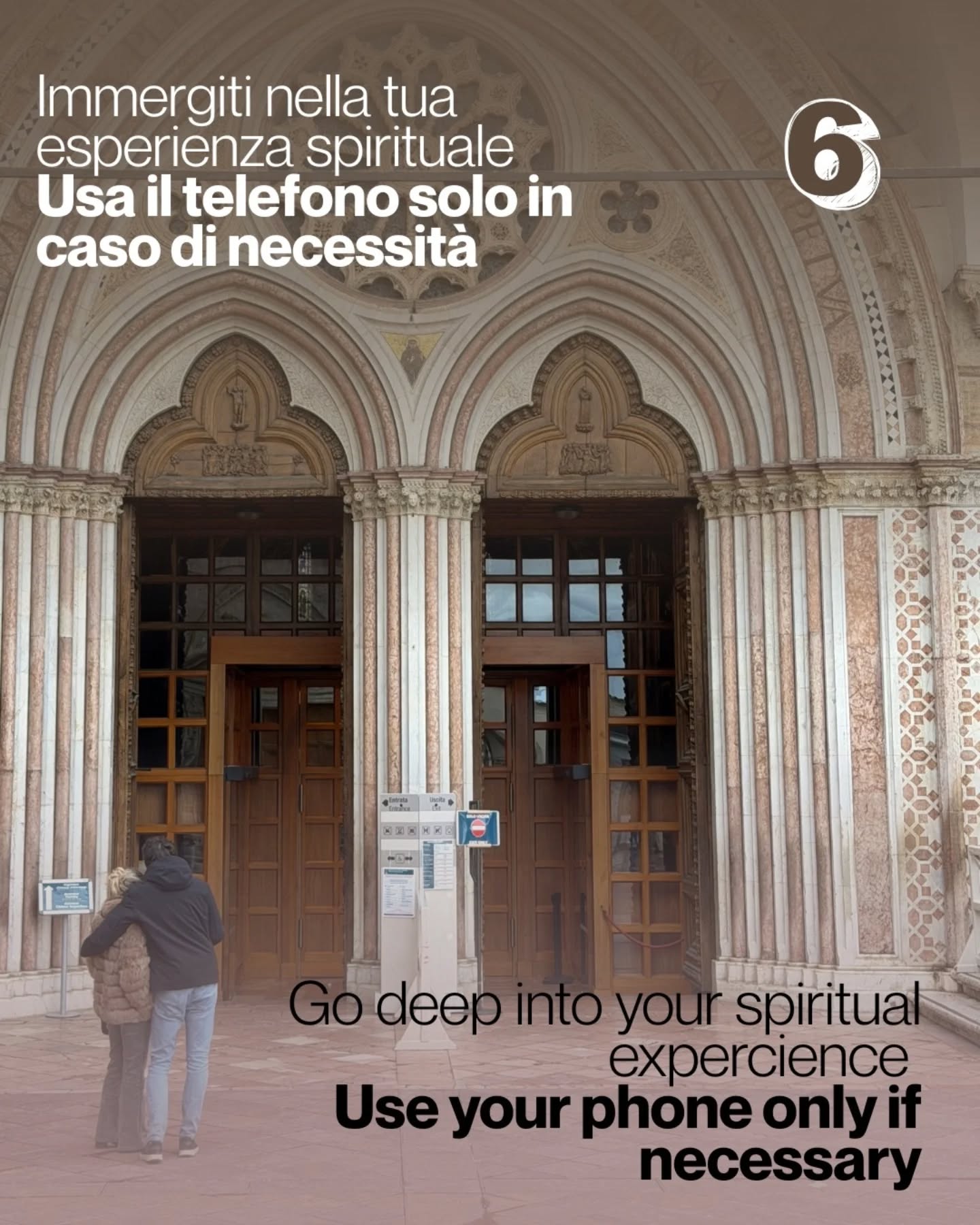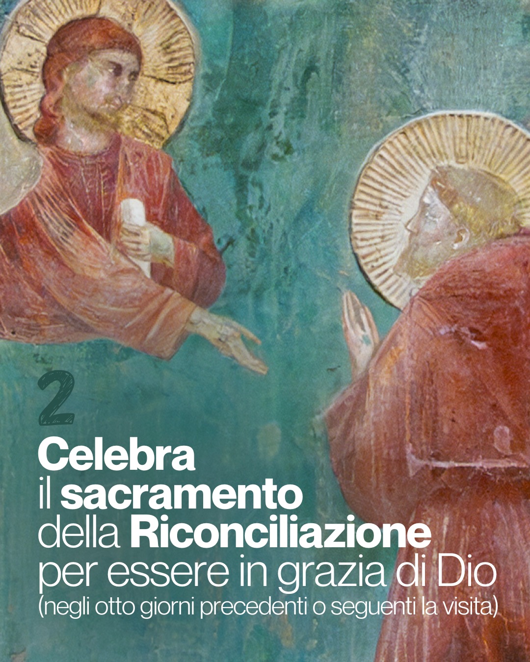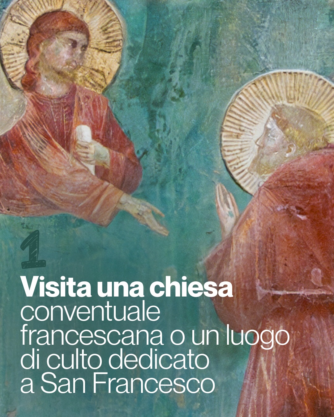 - Opzione B (autonomo e silenzioso): Questo percorso è pensato per essere vissuto in totale autonomia, lasciandosi guidare dal silenzio e dai sussidi multilingue preparati lungo il cammino. È un invito a un dialogo intimo e personale con la testimonianza di Francesco. Nessuno, neanche i capigruppo o le guide, potrà fornire spiegazioni a voce o con auricolari. La durata dell’intero percorso è stimata in circa 1 ora e 30 minuti dall’orario della prenotazione.