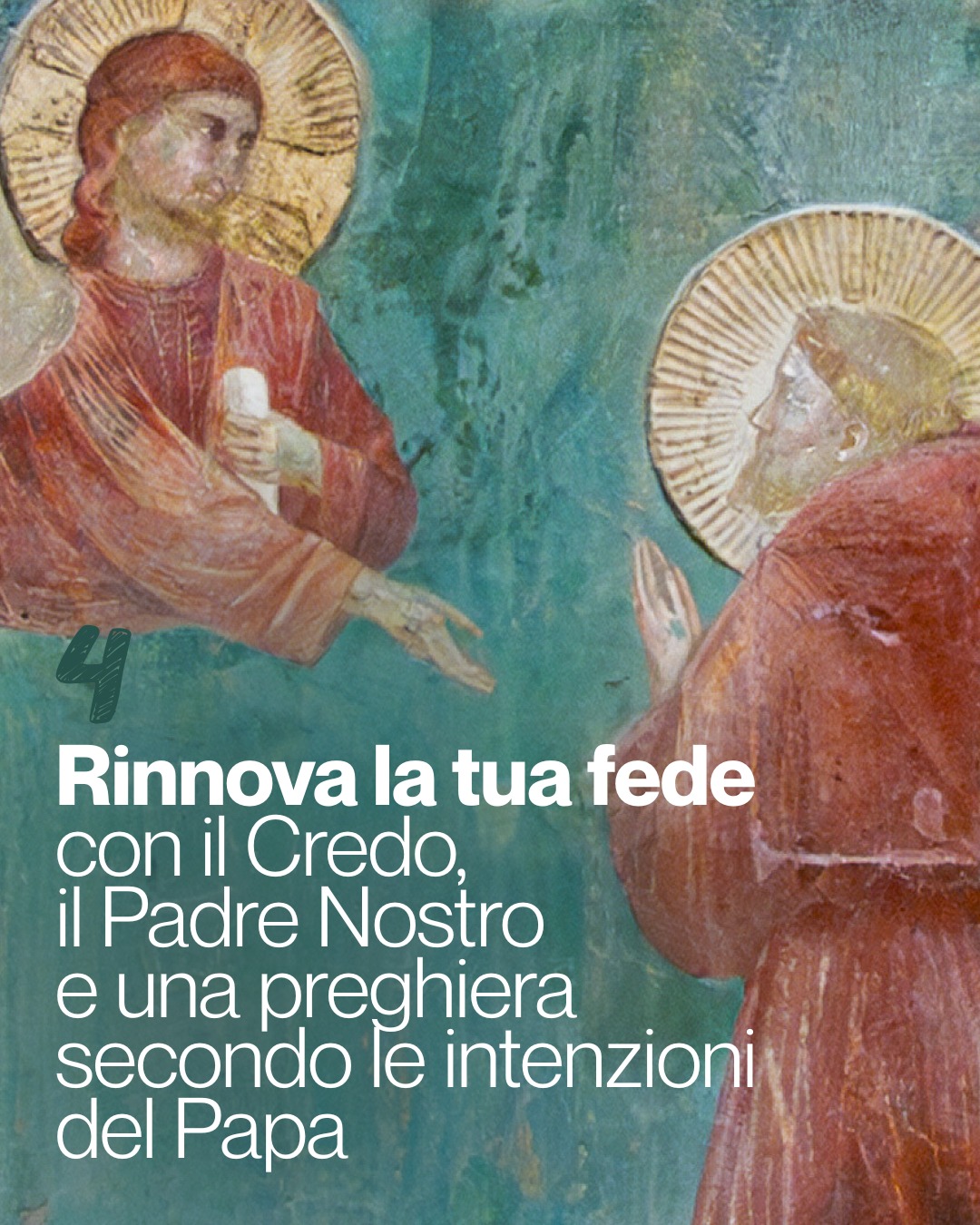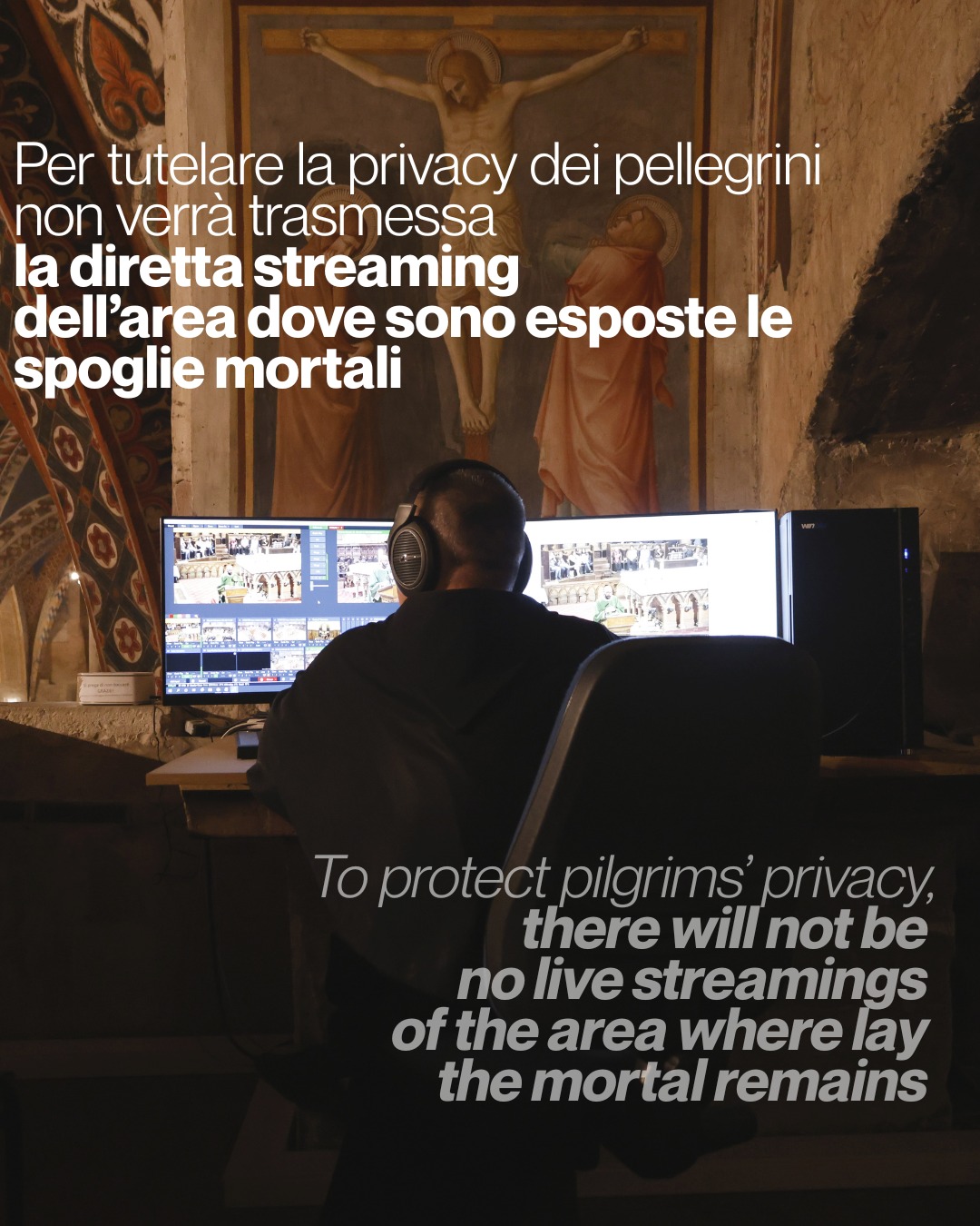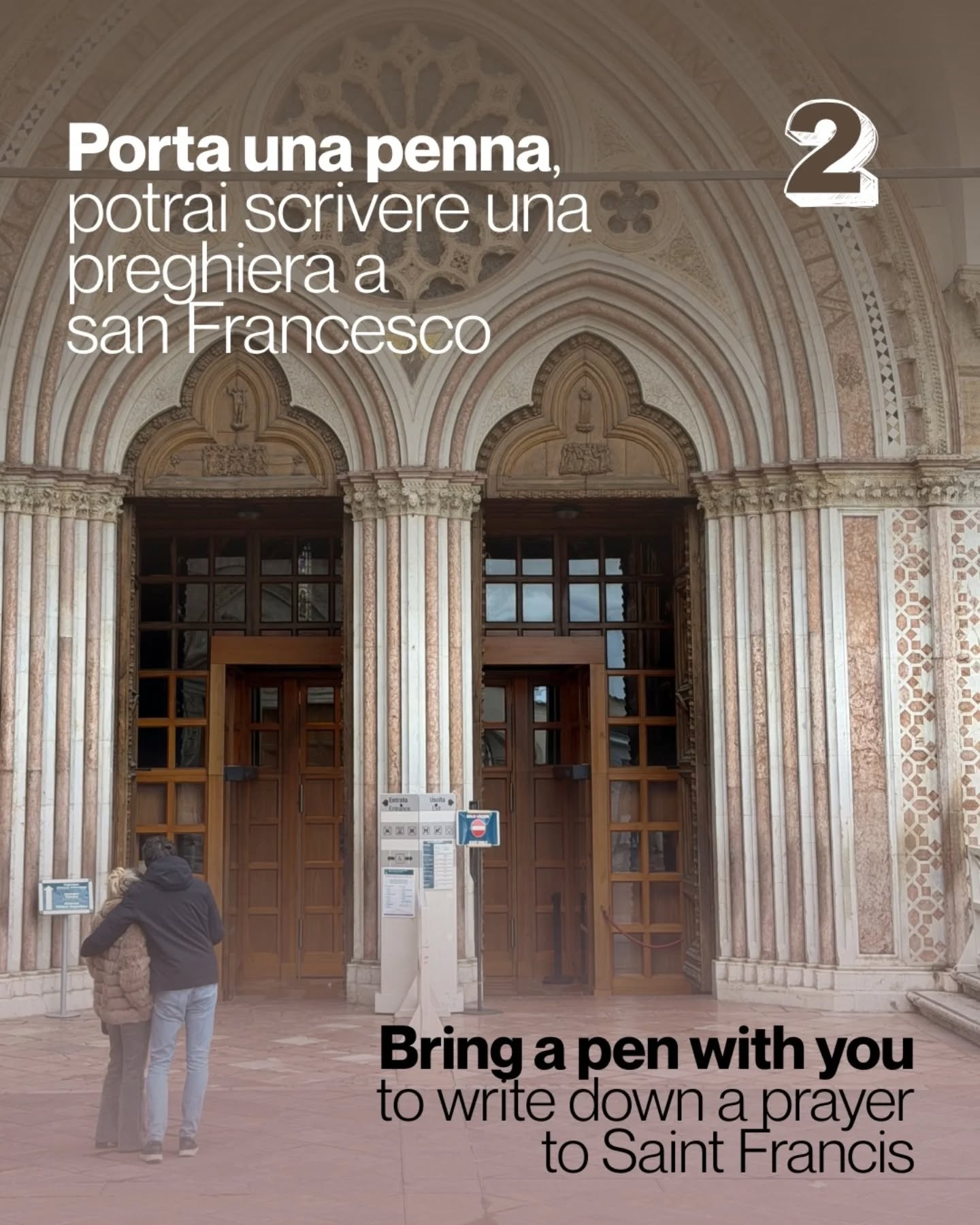 - Opzione B (autonomo e silenzioso): Questo percorso è pensato per essere vissuto in totale autonomia, lasciandosi guidare dal silenzio e dai sussidi multilingue preparati lungo il cammino. È un invito a un dialogo intimo e personale con la testimonianza di Francesco. Nessuno, neanche i capigruppo o le guide, potrà fornire spiegazioni a voce o con auricolari. La durata dell’intero percorso è stimata in circa 1 ora e 30 minuti dall’orario della prenotazione.