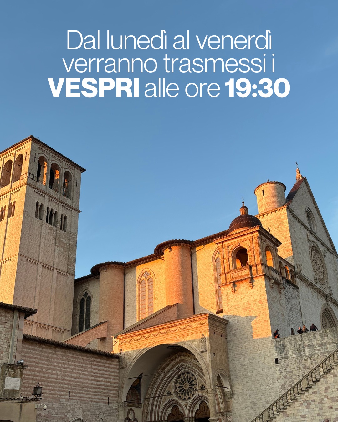 Le Sante Messe nella Chiesa Superiore saranno celebrate secondo i seguenti orari: