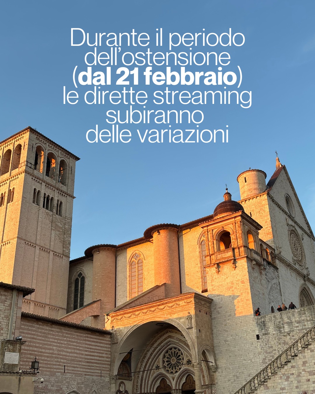 - Durante l'intero periodo dell'ostensione (22 febbraio – 22 marzo 2026), le visite guidate di carattere artistico e catechetico saranno sospese in entrambe le chiese della Basilica.